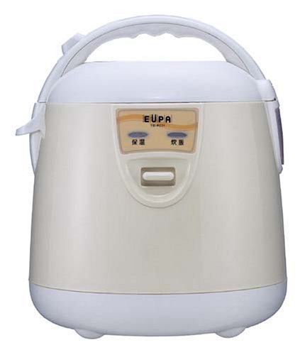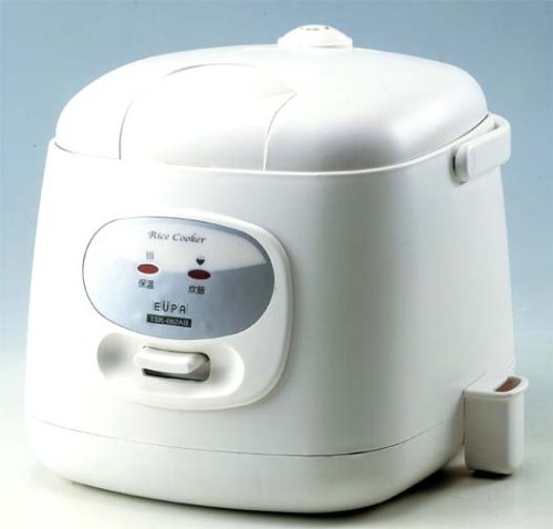 単身赴任も7年目。ご飯が炊き上がった後だったら良かったけれど、電気釜(ナショナル炊飯器)が突然壊れてしまいました。そろそろ転勤だと思うと、高い物は買う気にはならない。安い炊飯器を探していたら、このジャーに行き当たりました。EUPAなんて全く知らない。国産だと安くても7千円ほど。知らないメーカーの製品はレビューが頼り。レビューを見て買おうと思いました。